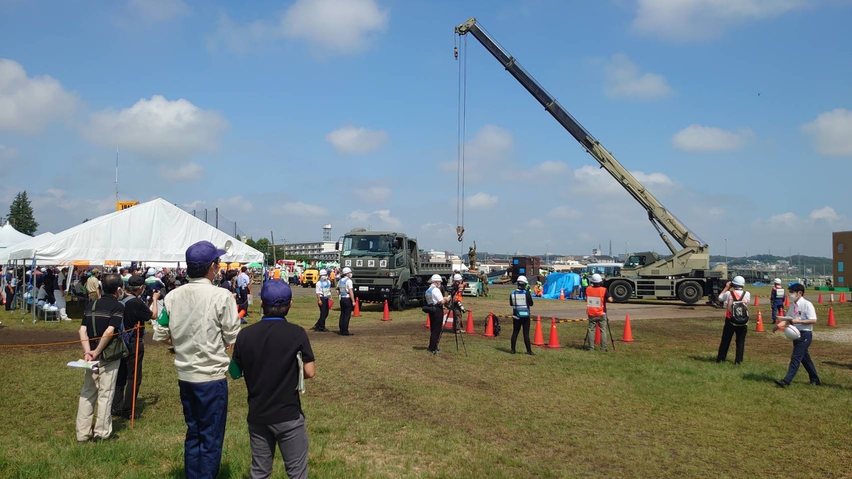 防災ヘリでの輸送、搬送訓練や消防隊による救出訓練などを見学し、